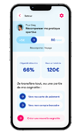 Pour faire des économies aisément, sans forcément dépendre d’un objectif sportif ou nutritionnel, vous pouvez par exemple créer une cagnotte “Mes économies” et choisir de verser une somme fixe de façon récurrente (1 €, 10 €, 20 €, 50 €, 100 €, etc.) jusqu’à ce que le montant vous convienne. Cette stratégie vous permet de mettre de l’argent de côté de manière autonome, rapide et facile. La somme collectée pourra ensuite être gardée sur l’application en attente d’un achat plaisir ou bien reversée sur votre compte bancaire, si besoin.